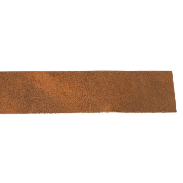 2″ strips cut from our 8-9 oz. Aged Bark Crazy Trail Oil Tan. Beautiful, rustic look and feel. Lengths average 54″ up to 65″, some may even be a little longer. Would be great for softer belts, guitar straps, cuffs, wristbands, etc.! Item #750-1003