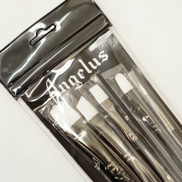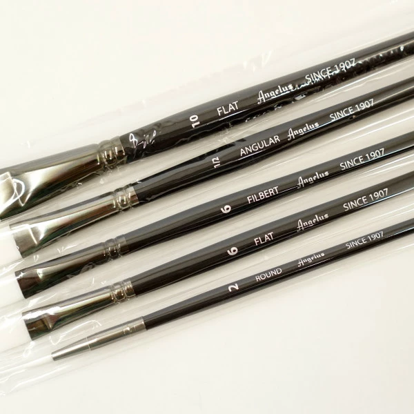 Made from synthetic fibers, Angelus Paint Brushes perform exceptionally well when paired with Angelus Acrylic Paints. The numerous soft fibers allow for longer, more satisfying strokes with minimal brush strokes left behind.