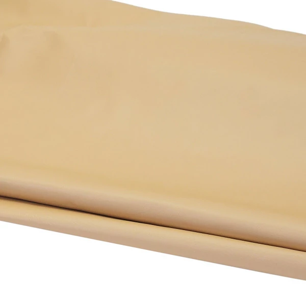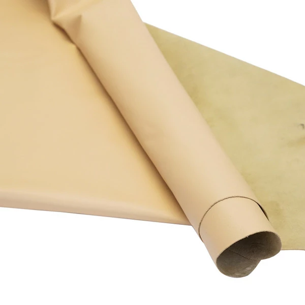Small calf sides, with a very nice yellowy-beige pigmented finish and smooth grain. Phenomenal lining leather! It’s also got the hand for making lightweight bags, backpacks, pouches, and more! Avg. 6-8 sqft with good length!