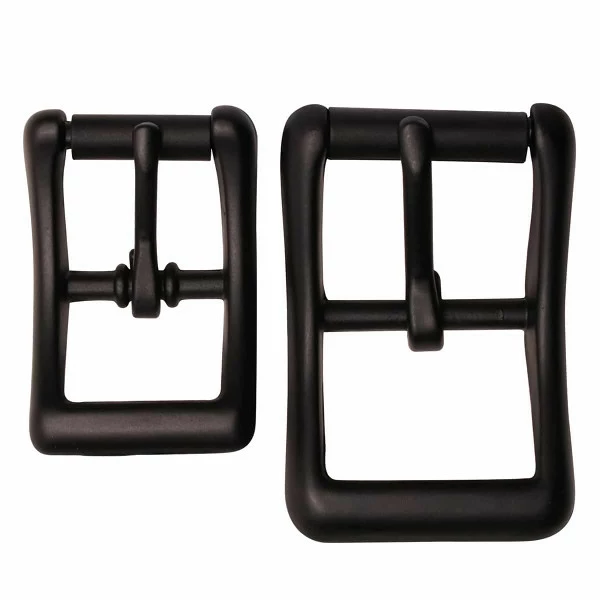 General, all-purpose strap buckles with a roller. For use in leather crafting, belt, strap, watch band, pet product, purse, bag, shoe, boot and accessory manufacturing and repair.