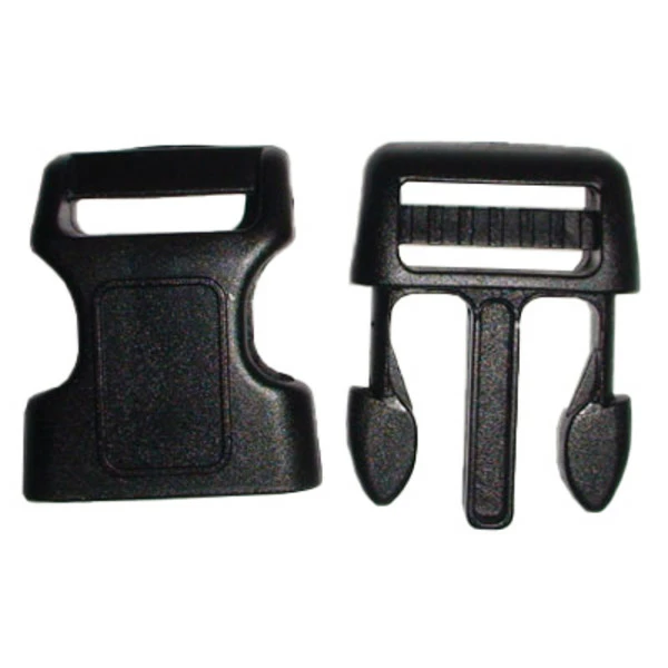 10 pack. Great buckles to use on back packs, fanny packs, dog collars, etc. Just like our regular quick release buckles, except these have a contoured shape. Black plastic. Item #4-124810.