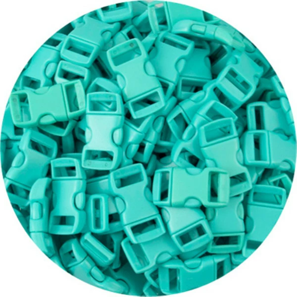 25 pack 3/8″ quick release buckle, side squeeze with a contoured design. Great for leather bracelets or use with paracord! Available in an array of colors. Item #344-1325.