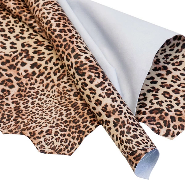 Cheetah print on Lamb. About 2-3 oz, great tensile strength, clean, and 7-10 ft avg. This is one of the best cheetah prints that I’ve seen. Apparently, the Turkish tanners have got it figured out because it looks just great! If you wrapped yourself in these things and went to a zoo, you’d probably have problems! It looks so real!! Great for bags and accessories for sure, as well as trim, and garments.
