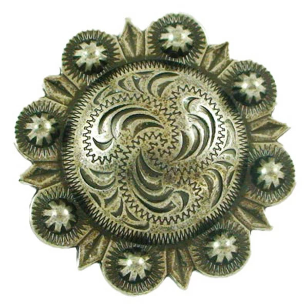 1-1/4″ Berry Concho with Old Silver finish. Great for decorating belts, saddles, lots of different accessories, etc. Screwback. Item #115-86102.
