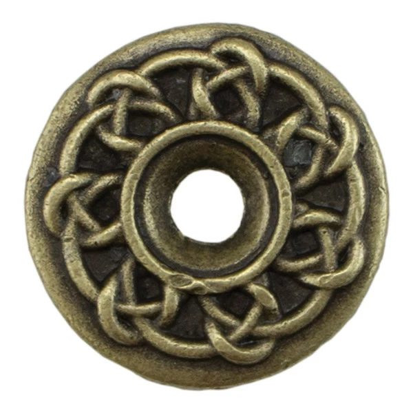 Designed to fit our synthetic rivets and more. Now available in 4 finishes-Original Antique Silver, Antique Nickel, Antique Brass and Antique Copper. All are 3/4″ in diameter except for the Rope Edge which is 9/16″. Antique Brass is item #115-778702.