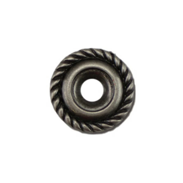 Designed to fit our synthetic rivets and more. Now available in 4 finishes-Original Antique Silver, Antique Nickel, Antique Brass and Antique Copper. All are 3/4″ in diameter except for the Rope Edge which is 9/16″. Antique Nickel is item #115-778606.