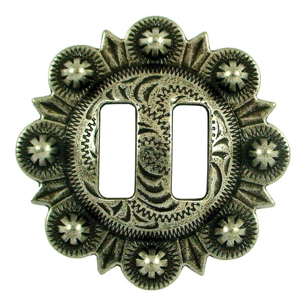 1-1/2″ Slotted Berry Concho in Old Silver finish. Great for decorating many things from belts to bridles, saddlebags, etc. Item #115-176902.