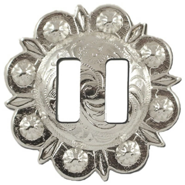 1″ Slotted Floral Berry Concho with Shiny Silver finish. Great for decorating many things from belts to bridles, saddlebags, etc. Item #115-160034.