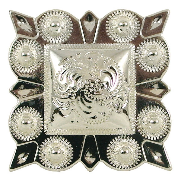 1-1/4″ Square Berry Concho with Shiny Silver finish. Great for decorating belts, saddles, lots of different accessories etc. Screwback. Item #115-232407.
