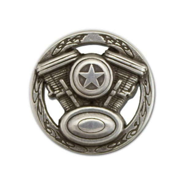 V-Twin Concho: Antique silver plate. Hard to beat on motorcycle accessories. 1-1/4″. Screwback. Item #141-135.