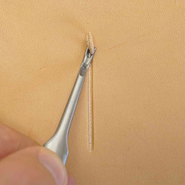 This is a durable, stainless steel, U Groover Tool is ideal for gouging out fold lines and stitch lines for notebooks, cases, handbags, and more! Denny, our mastercraftsman, says, “It works well, but the handle is a bit short and it makes pretty wide grooves.”
