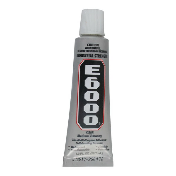 E6000 cement is a unique self-leveling, non-flammable adhesive that’s incredibly versatile. It’s strong, flexible, waterproof, and non-flammable. You can probably find 6000 projects you can use it for! It’s great for fabrics, wood, leather, metal, glass, ceramics, and a whole lot more!