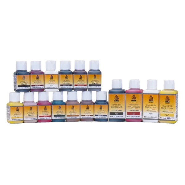 Fenice Diamond Edge Color has raised the bar when it comes to water-based edge dressing! The smooth formula provides excellent, colorfast coverage that is rub and flex resistant, and the superior saturation ensures you get the deepest, richest colors possible! There are 13 brilliant colors to choose from, that complement and enhance each other, blend well, and can be customized to suit any project you come up with. Great for use in conjunction with Fenice Diamond Waterstains!