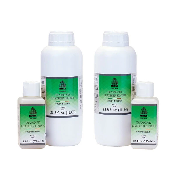 Fenice Diamond Leather Finish is a durable, water-based topcoat that is intended for use on stained or unstained veg-tanned and crust leathers.