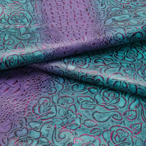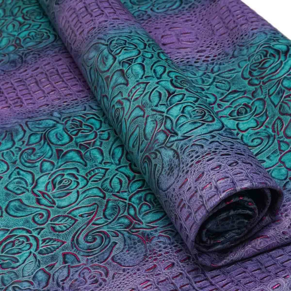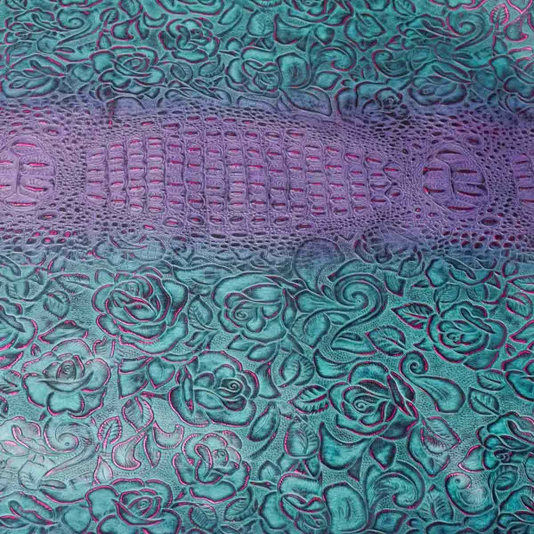 Get the best of both worlds with our Floral Croc Embossed Cow! Featuring the prized Hornback design, bordered by a large, bold floral print, in a repeating pattern. Done in two-tone colors, with a magnificent tipping process that highlights every detail and illustrates depth. This fun and unique design is perfect for clutches and bags of all sorts, totes, belts, and other personal leather goods, as well as upholstery applications like seat and ottoman covers, and cabinet and table inlays.