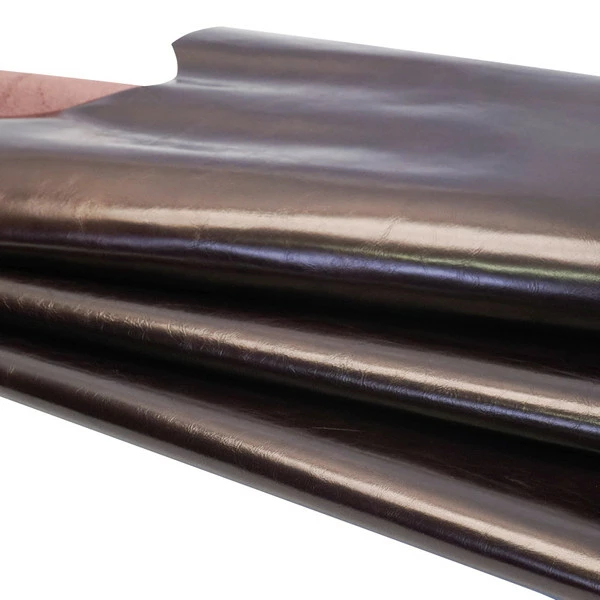 Distressed Chocolate Calf Sides with a slight metallic bronze sheen when it’s in the light. A nice stand up for bags, but also quite nice for belt liner, clutches and wallets. While supply lasts!!!