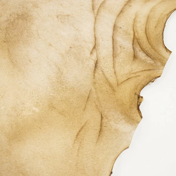 This is an excellent choice for making lamp shades and smaller drums, just keep in mind that its not as thick as the cow rawhide. All skins are unbleached. Most of these skins will cut a 18-22″ drum with overlap. 1-2 oz. (.4 – .8mm) Sold by the skin.