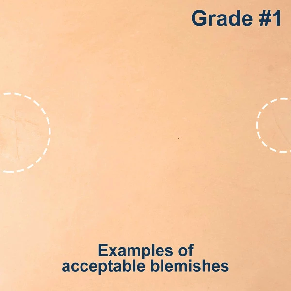 Grade #1 is the best and cleanest leather we offer. If a piece can be described as nothing short of perfect, it’s certainly grade 1 leather. However, grade 1 leather is not without its imperfections! Leather with brands, excessive bug bites and top-grain knife marks is not considered Grade 1. Other scars are fine, but the placement could affect the grade. For pre-cuts, a distinct blemish in the middle of a piece will knock down its grade, but a blemish near an edge or corner may not. Also consider the amount of blemishes on a piece. A few small scars that won’t cause much waste should be just fine. If a crafter is facing an inch of loss, it may be no big deal, but if a crafter is losing five square inches on a 12 inch by 12 inch piece, it’s probably not a grade 1 piece of leather.