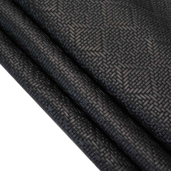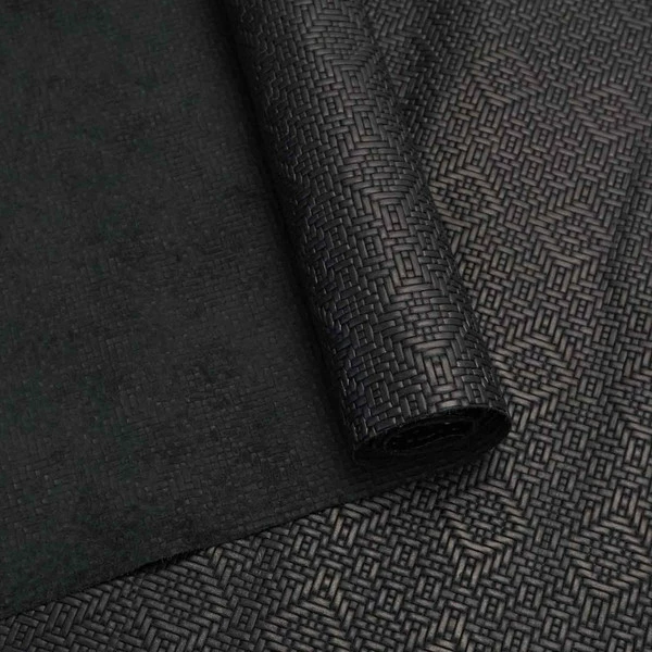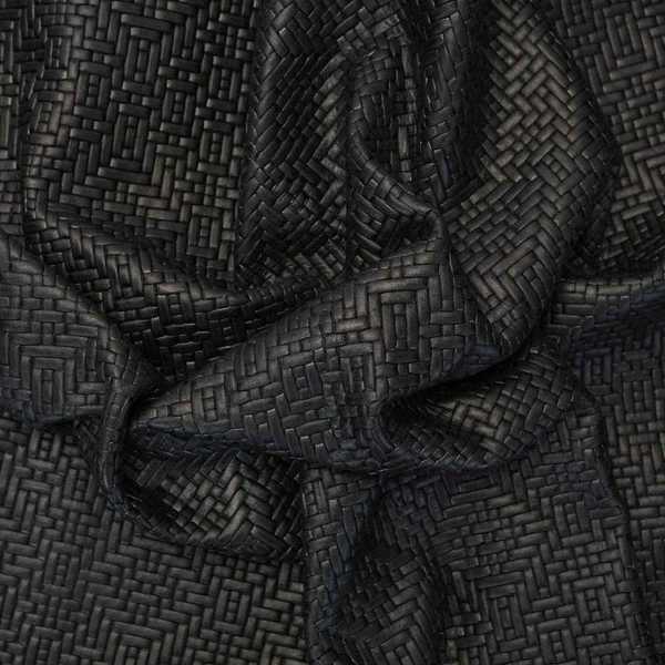 Italian Weave on Cow – Black Riviera. Woven-embossed cow sides ranging from 23 – 28 square feet and are approx. 2 – 3 oz. (0.8 – 1.2 mm.) Sold by the square foot. Order what you want, we’ll cut it for you!