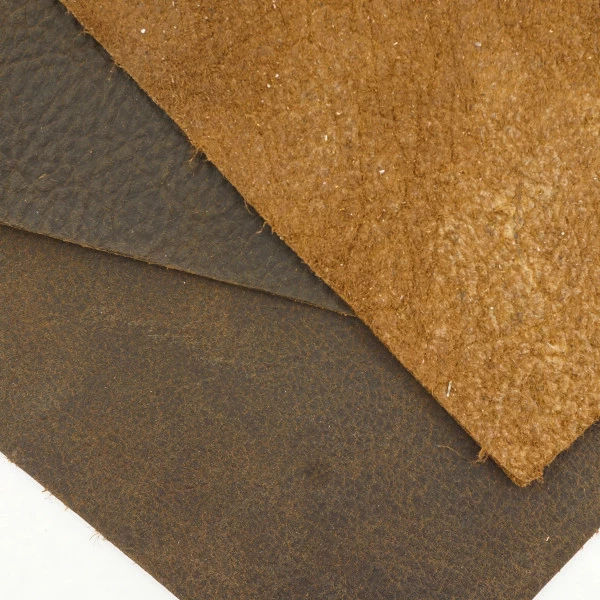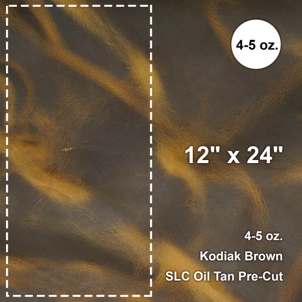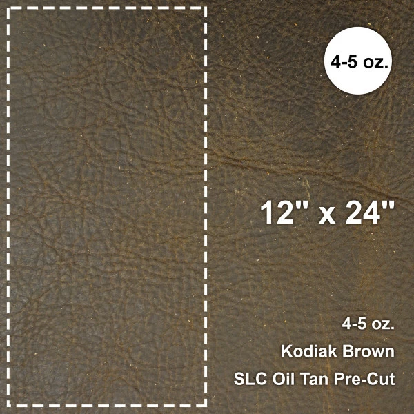 SLC’s Kodiak Brown leather is a matte, rustic, walnut brown that pulls up to a handsome hazelnut color. The leather has a distressed finish with a soft hand and moderate stretch. We love the soft, velvety, flexible feel of this attractive leather.