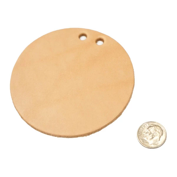 Approximate measurements – 3-1/4″ x 3-1/4″ (8.3 x 8.3 cm). Cut from 7-9 oz. (2.8 – 3.6mm) natural veg tan leather. Available as each, 25 pack, and 100 pack.