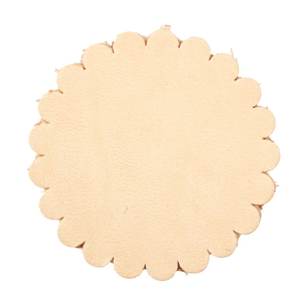 Veg Tan Leather Shape 6 pack – Scalloped Concho. Approximate weight 7-9 oz. (2.8 – 3.6mm). Available in 5 widths: 1″ (25mm), 1-1/4″ (32mm), 1-1/2″ (38mm), 1-3/4″ (44mm), 2″ (51mm).