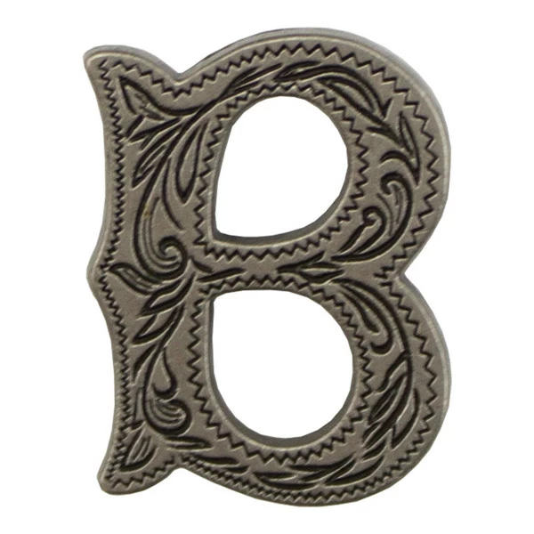 3/4″ antique silver over solid brass letters. Screwback. Item #115-133802.
