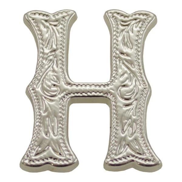 3/4″ silver over solid brass letters. Screwback. Item #115-133908.