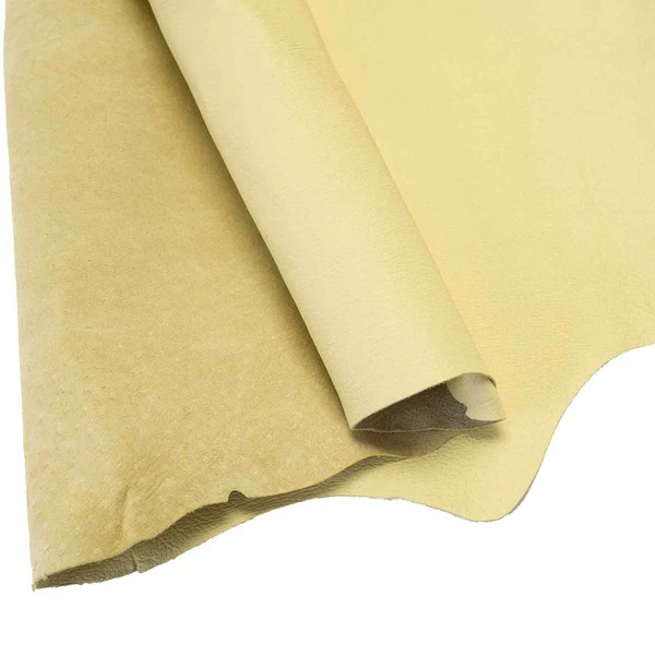 This is a trade name for lining pigskins with the grain still on it. Commonly used inside of shoes, it works very well for lining belts, boots, and anything that you want to have a soft feel. It’s not quite garment soft, but it’s not as firm as mission either. 14-17 sf. avg. Priced per square foot. Item #371-939205.