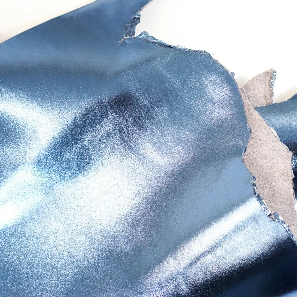 Metallic Cow Side – Powder Blue. 3-4 oz. (1.19 – 1.60mm). Sides average 18-24 sq ft. Sold by the sq ft. We will cut.