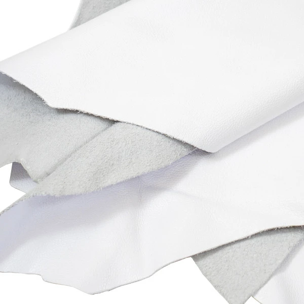 Midweight Biker/Chap Side – White. 3-1/2oz (1.39mm). Sides average 22-25 sq ft. Sold by the sq ft. We will cut.