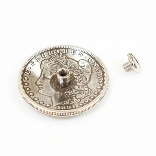 SPECIAL PURCHASE. Center Placed Single Screwback Morgan Dollar Eagle Concho – 1-1/2″, Antique Silver Finish