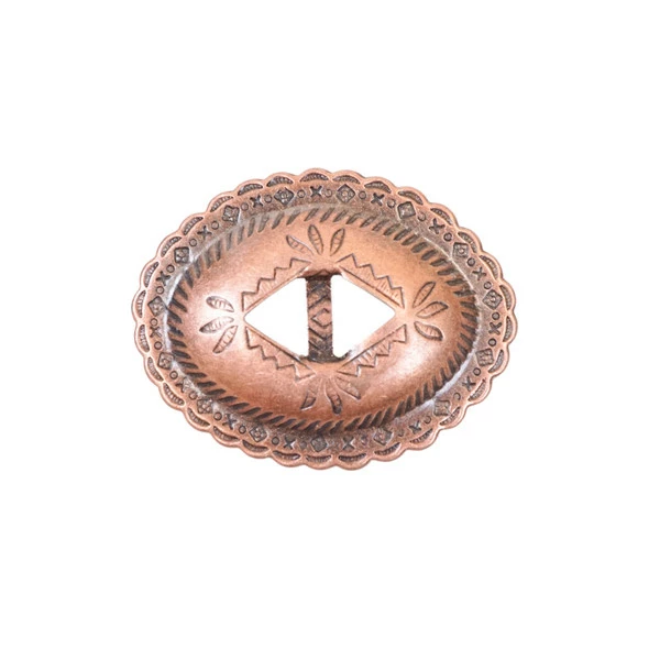 Oval – Pueblo, Diamond Slotted Concho. 1 1/2″ x 1 1/8″ and 1 3/4″ x 2 1/4″. Available in Antique Brass, Antique Copper and Antique Nickel and 10 and 100 Packs.
