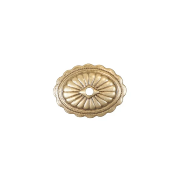 Oval – Sunburst, Rivet on Concho. 7/8″ x 1 1/8″ and 1 1/8″ x 1 1/2″. Available in Antique Brass, Antique Copper and Antique Nickel and 10 and 100 Packs.