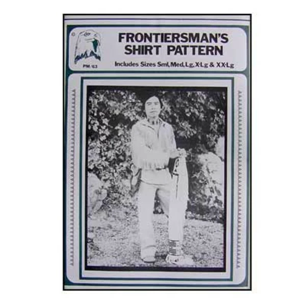 This leather shirt depicts the style worn in the early 19th century by fur trappers and Indians alike. Sizes small through xx-large.