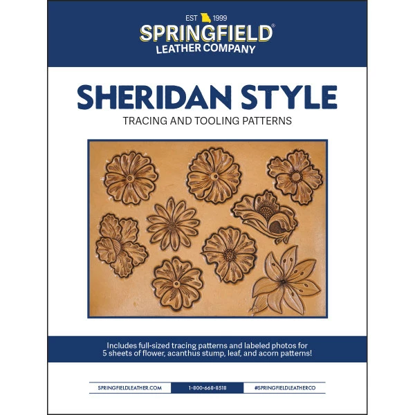 Start tooling classic, beautiful designs today! The Sheridan Style Tooling Pattern Pack includes full-sized tracing patterns and labeled photos for 5 sheets of flower, acanthus stump, leaf, and acorn patterns.