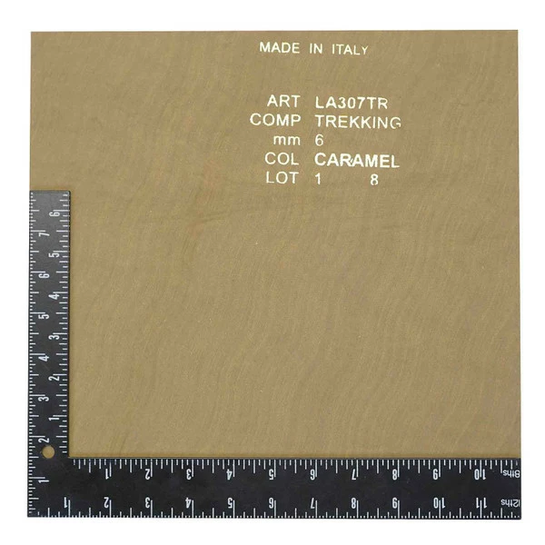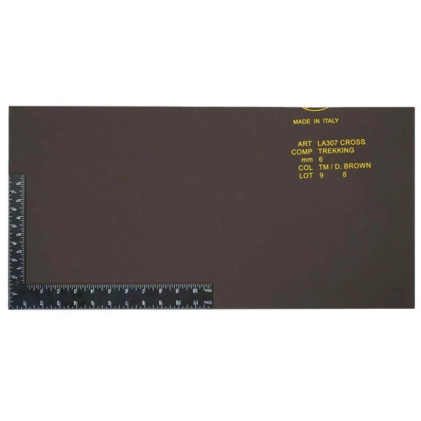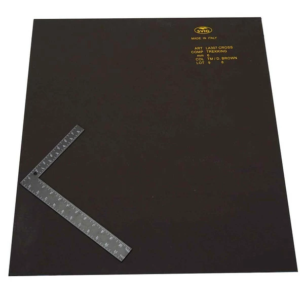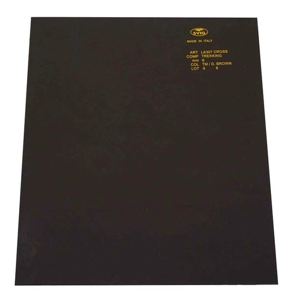 Made from sound absorbent rubber. Firm rubber shoe sole material, great for moc soles, perfect for setting crystal rivets, makes a great backing for a slab of marble or granite. Will double as a cutting surface if you don’t have any poly material. Not really suitable for punching holes though. Colors will vary, and are not guaranteed. Tread on one side and smooth on the other.