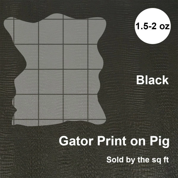 Very nice looking Baby Caiman embossed pigskins available in 6 popular colors!!! Great for billfolds, belts, wallets, handbags and whatever else you can think of! Approximately 1-1/2 to 2 oz. and the skins average around 9-14 sf. with good length! Sold by the square foot. Item # 371-501.