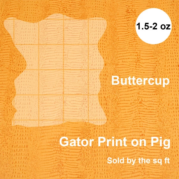 Very nice looking Baby Caiman embossed pigskins available in 6 popular colors!!! Great for billfolds, belts, wallets, handbags and whatever else you can think of! Approximately 1-1/2 to 2 oz. and the skins average around 9-14 sf. with good length! Sold by the square foot. Item # 371-504.