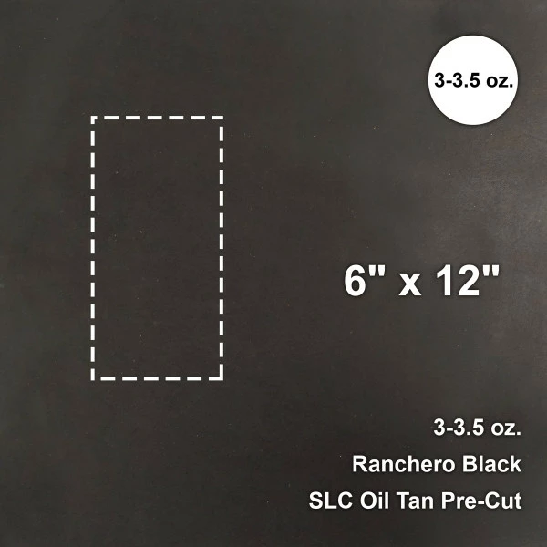 Ranchero Black, 3-3.5 oz. leather is a gorgeous, midnight black leather with a smooth grain and glossy finish. The leather has a moderately soft hand and moderate amount of stretch. This leather would make excellent wallets, bags, and more.