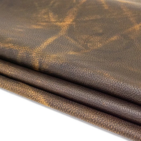 Get textured grain and a beautiful pull up with Ranger Oil Tans from Springfield Leather. These midweight, earth tone sides are extremely soft to the touch with a rich oiled finish and prominent pull up. Pliable and tough, this leather is perfect for anyone looking for an oil tan with a rustic look and a pebbled finish.