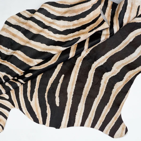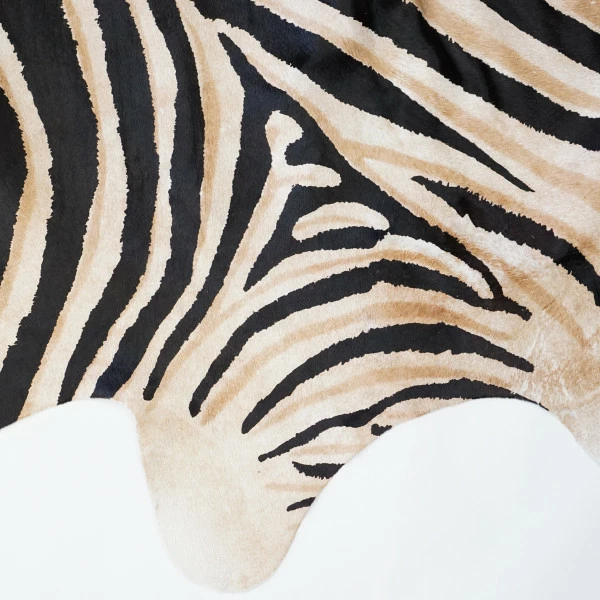 Hair-On rug with Zebra Print. 30-35 sq ft. 82″ x 72″ (208.5cm x 183cm).