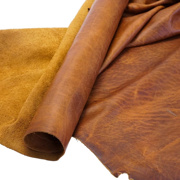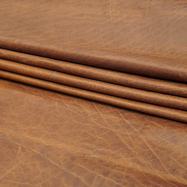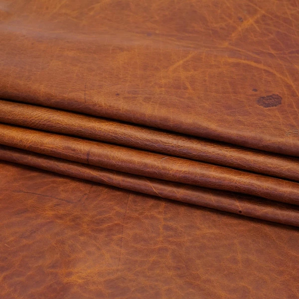 Rustic Bison leather is tanned from the world famous North American Bison. The beauty of the natural grain really shines through in this incredible leather. Incredibly durable, with a very soft, heavy drape, and contrasting pull-up, this leather would make the most glorious bags, satchels, duffels, etc. Because this is a full-grain leather, some natural range markings are to be expected, but these sides will be very clean for the most part. Available in two colors: Tobacco #288-007 and Dark Wheat: #288-008.