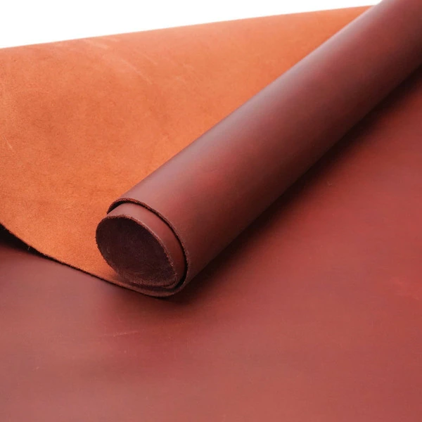 Rustic Copper Canyon is a heavily oiled leather, featuring a rich, pebble grain texture. The leather has a prominent pull up that ranges from a dark, auburn brown to a light, warm tan color, resulting in a splendid rustic look with beautiful variations of brown. The leather features a moderate hand and very little stretch.