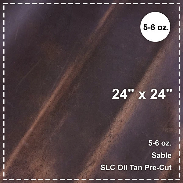 Sable oil tan leather is a rich, espresso brown with a matte finish. The soft, nubuck-like feel and good oil content makes the leather sweet to the touch but may need some latex glue to hold pieces together! The leather also has a slight stretch, medium hand, and uniform and tight grain. With all these charms, the leather would make fine bags, chaps, and boots!