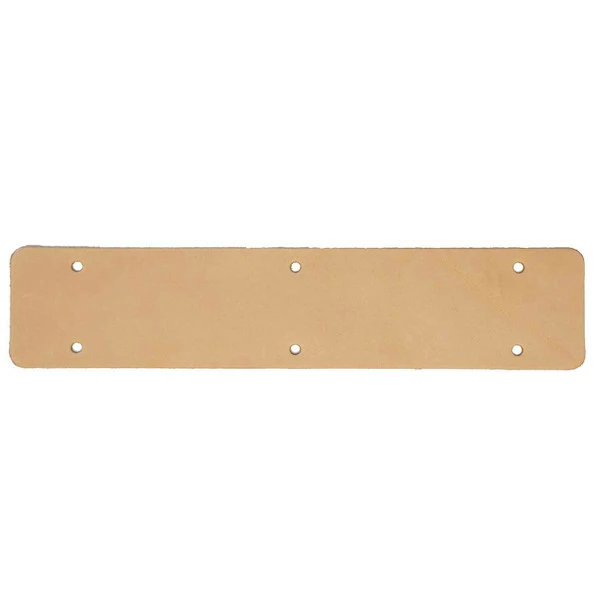 Shape – Edge Spine. Approximate measurements – 2-1/2″ x 11″ (5.71 x 27.94 cm.). Cut from 4 – 5 oz. (1.6 – 2 mm.) natural Hermann Oak veg tan leather. Available as each, 25 pack, and 100 pack. Manufactured by SLC.