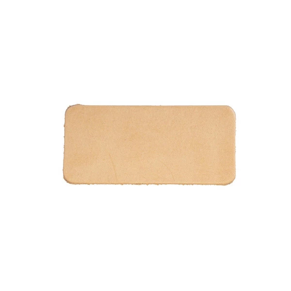 Shape – Hat Patch – Round Corner – Small. Approximate measurements – 3 1/4″ x 1 1/2″. (8.27 x 3.81 cm.) Cut from 5 – 6 oz. (2 – 2.4 mm.) natural veg tan leather. Available as Each, 25 Pack, and 100 Pack. Manufactured by SLC.