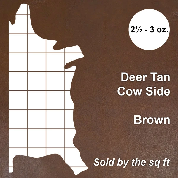 Very nice leather that runs in the 2-1/2 to 3 oz. range. Its made to simulate deerskin, and is very good for Native American applications, boot linings, soft chaps, bags and a wide range of other things. Natural looking range marks are part of it. One of our most popular leathers! 22-26 sf. avg. Sold by the square foot. Item # 62-933308.