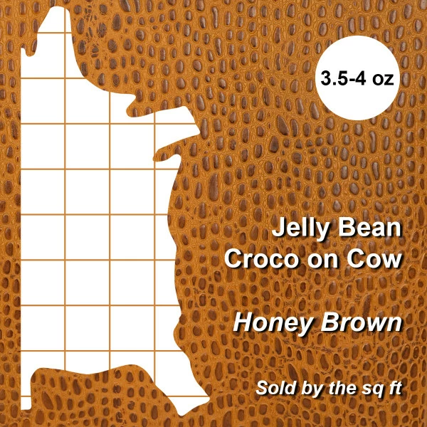 Great Croco print that seems to be so popular, we decided to make it available as regular stock! The Jelly Bean pattern just makes this leather even more versatile in its applications! Pieces can average anywhere from 14-16 sf. so order what you need. Sold by the square foot. Approx. 3-4 oz. Item # 371-11162.