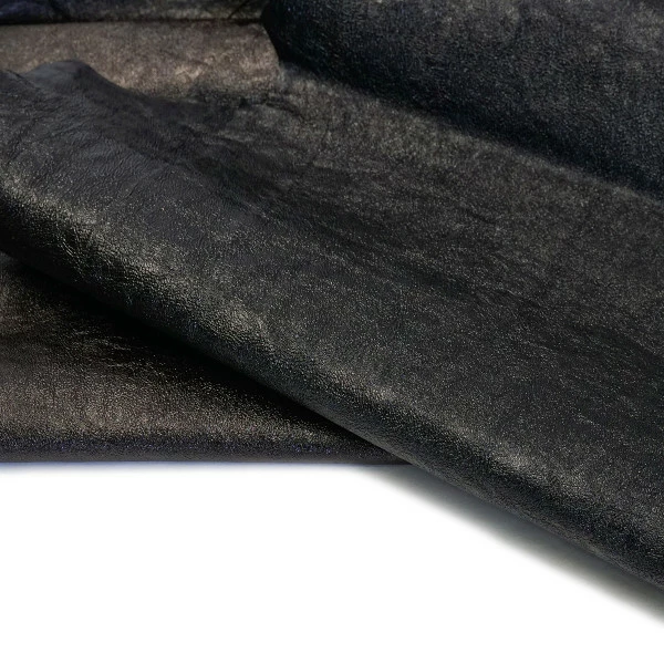 This is strange leather! It’s also really really cool! I guess the reason for the name is that it looks like the really fine grain on certain parts of a sharkskin. So it’s like a super fine grain, and it has a very high shine to it. Bottom line is that it would probably make some of the most incredibly impressive insides for wallets and especially clutches that you’ll ever see. If you want a really classy “fashion” touch for something, this would do it! Skins average around 4 ½ to 5 ft. and are 2 to 2 ½ oz, with the perfect firmness. Available in Black (541-0356) and Dark Brown (541-0357).